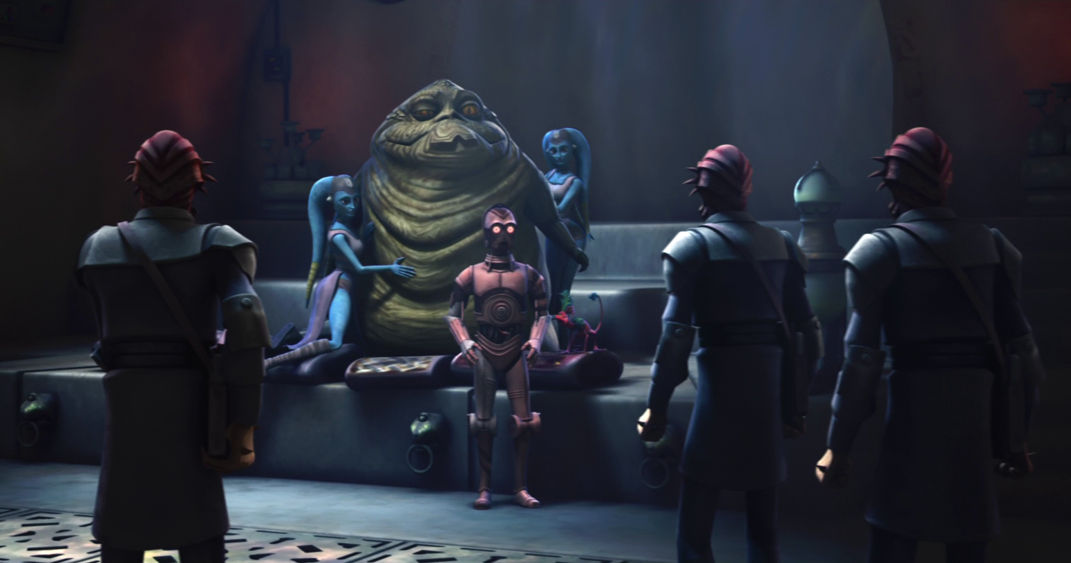 In 22 BBY,[7] Jedi Knight Anakin Skywalker, along with his Padawan Ahsoka Tano returned Jabba's son Rotta, to Tatooine in hopes of the Galactic Republic gaining access over the Hutt's secret hyperspace routes against the Confederacy of Independent Systems despite sabotage from Asajj Ventress and Sith Lord Count Dooku. Subsequently the Hutt Clan, became an ally of the Galactic Republic signing a treaty with them.[10]