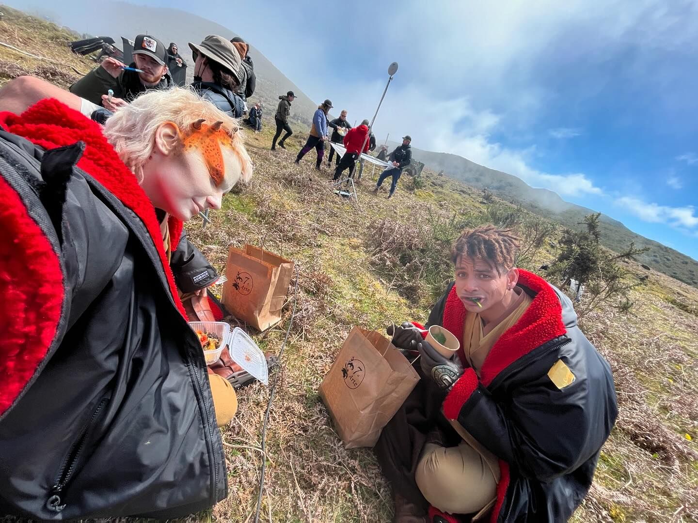 Dafne Keen and Charlie Barnett on set of The Acolyte.